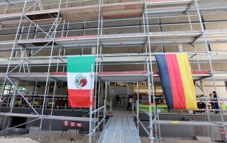 According to Mexican custom, all those present received patterned scarves. The German and Mexican flags waved symbolically at the entrance.